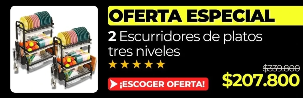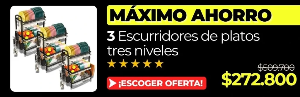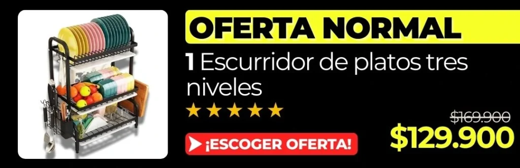 Deja de lidiar con platos apilados y desorden que hace ver tu cocina saturada. Con este escurridor de 3 niveles podrás organizar toda tu vajilla en un solo lugar, mantener tu espacio limpio y disfrutar de una cocina más práctica y agradable todos los días.